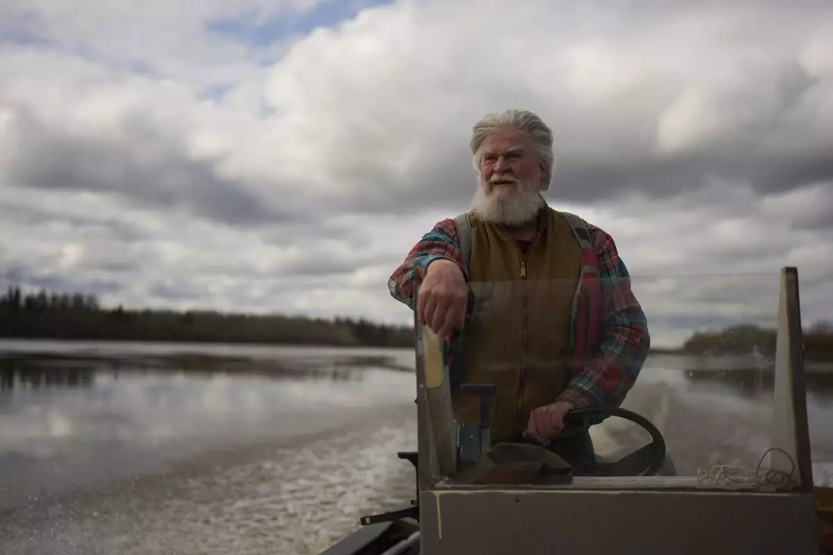 Phil Koontz drives his boat on the Yukon River, Wednesday, May 21, 2025, in Galena, Alaska. (AP Photo/John Locher)