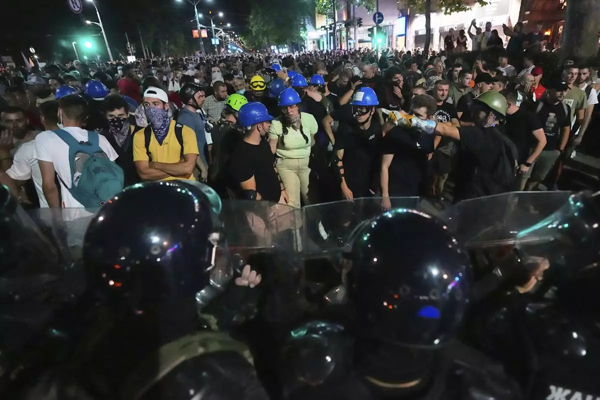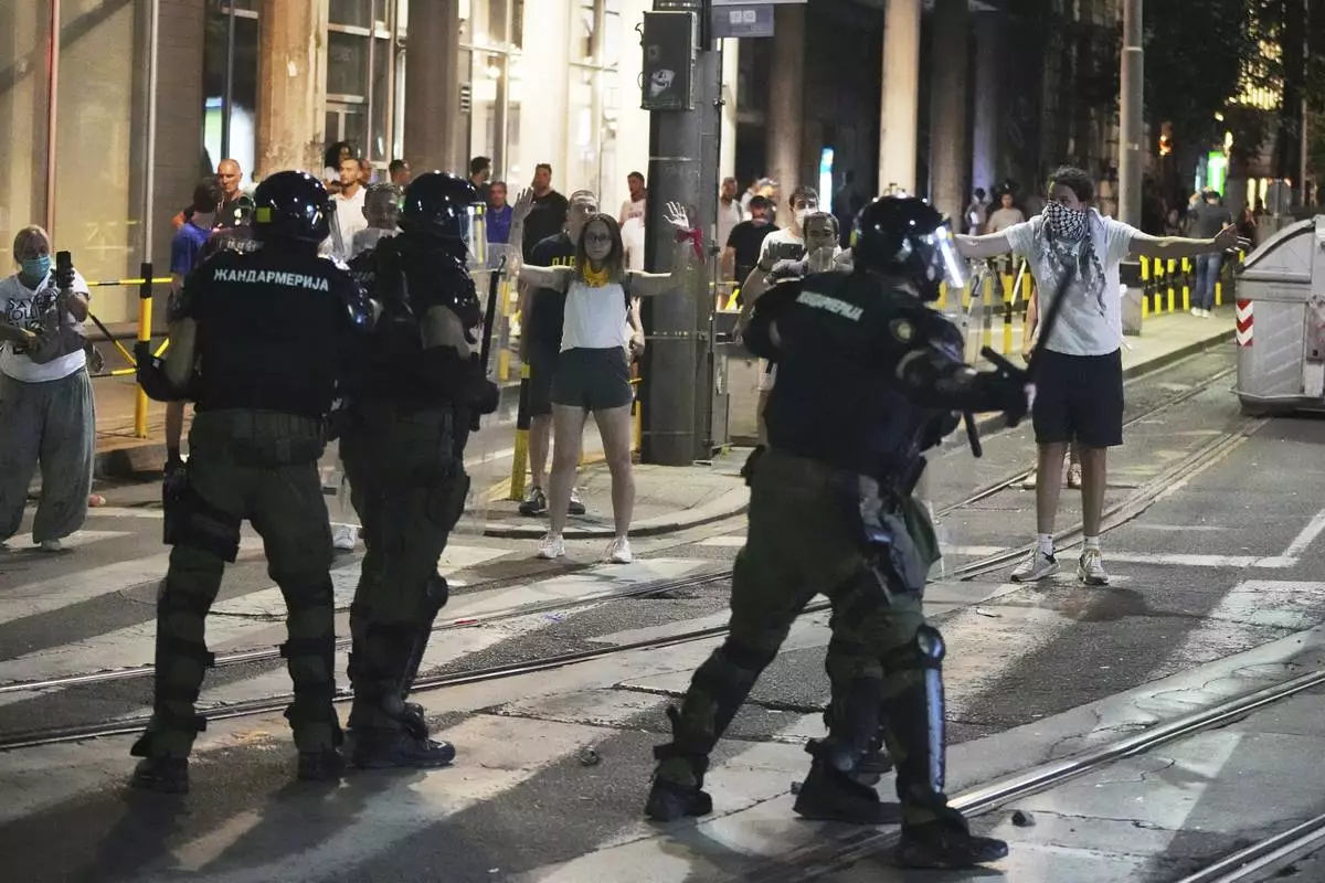 BELGRADE, Serbia (AP) — Anti-government protesters clash with riot police during a major rally demanding early parliamentary elections.