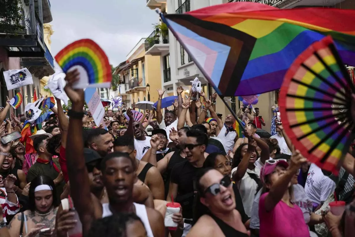 Revelers take part in a Pride parade marking the culmination of LGBTQ+ Pride month in Panama City, Saturday, June 28, 2025. (AP Photo/Matias Delacroix)