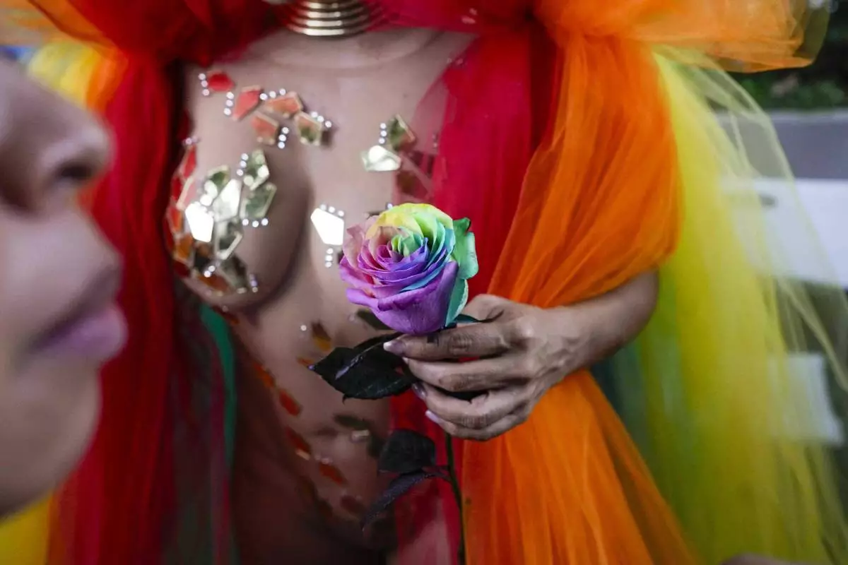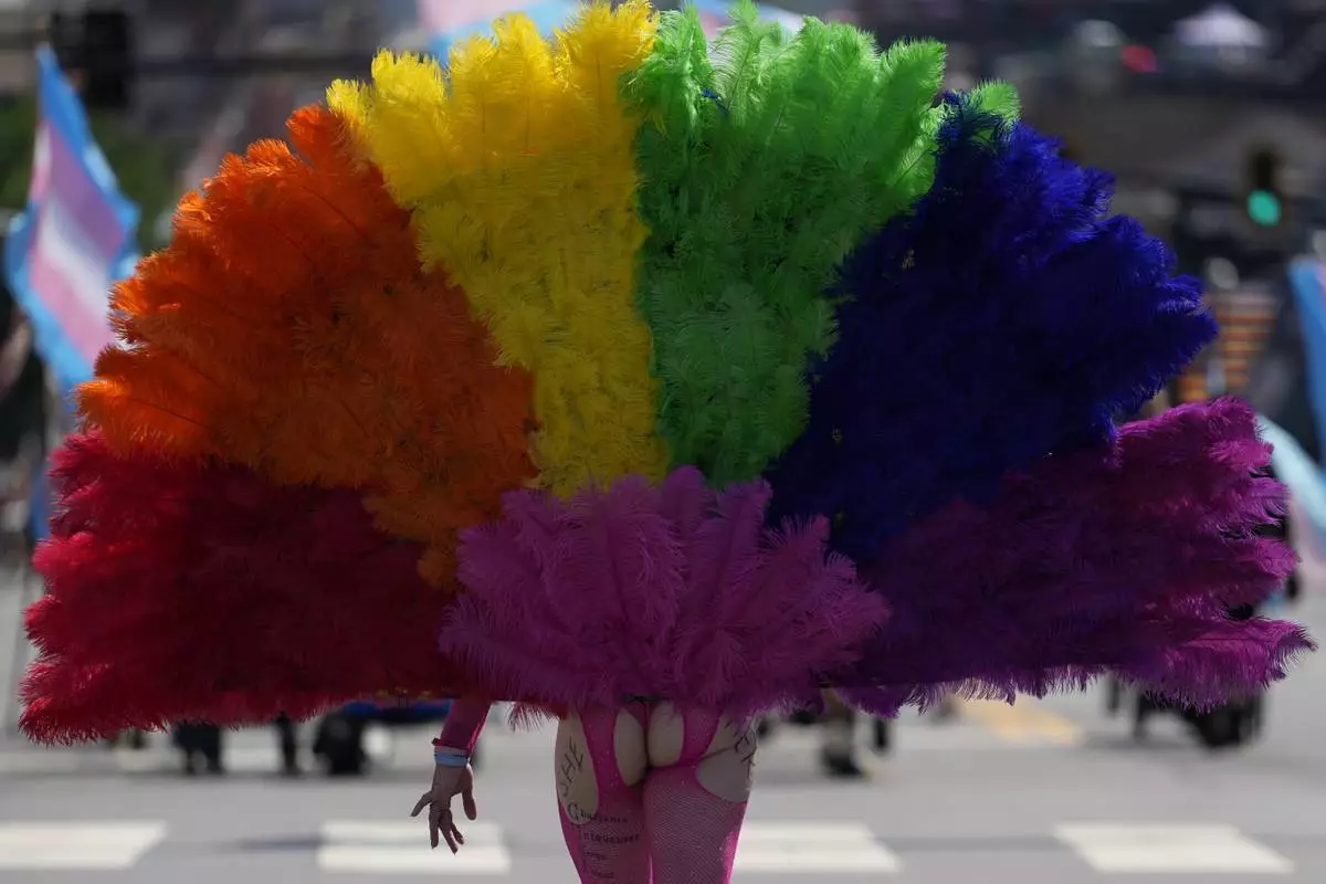A reveler takes part in a Pride parade marking the culmination of LGBTQ+ Pride month in Panama City, Saturday, June 28, 2025. (AP Photo/Matias Delacroix)