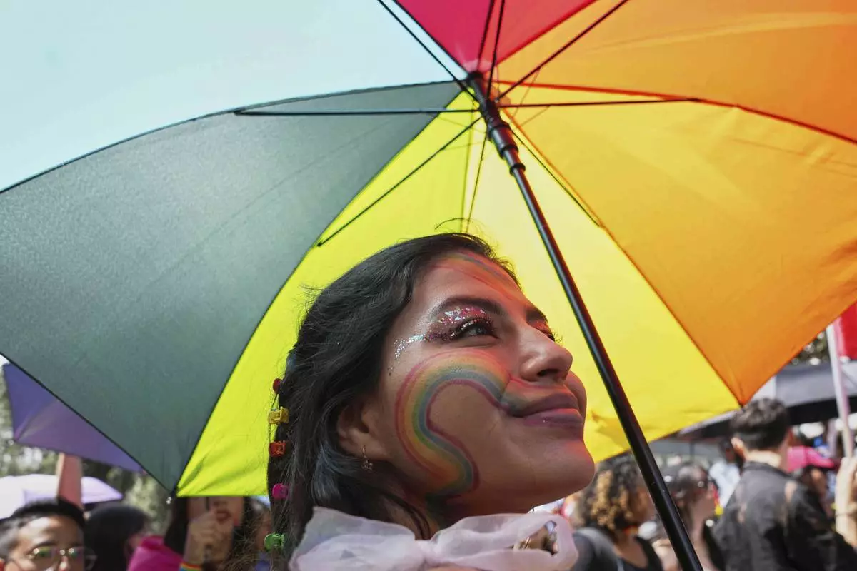 People take part in the annual Pride Parade in Mexico City, Saturday, June 28, 2025. (AP Photo/Eduardo Verdugo)