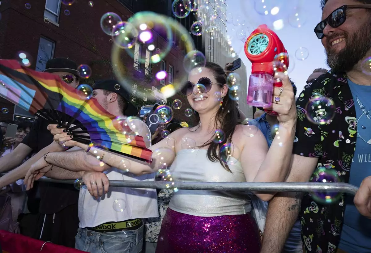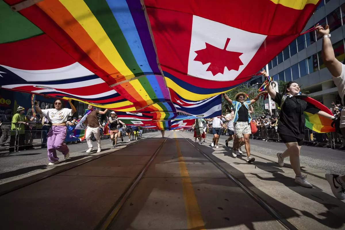Revelers participate in the Pride Parade on Sunday, June 29, 2025, in Toronto, Canada. (Arlyn McAdorey/The Canadian Press via AP)