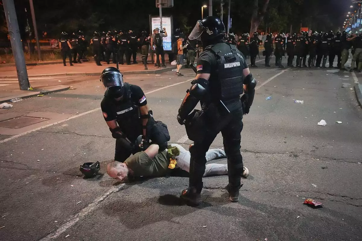Vucic earlier Sunday announced the arrests at a press conference, accusing organizers of the rally of inciting violence and attacks on police, urging legal prosecution.