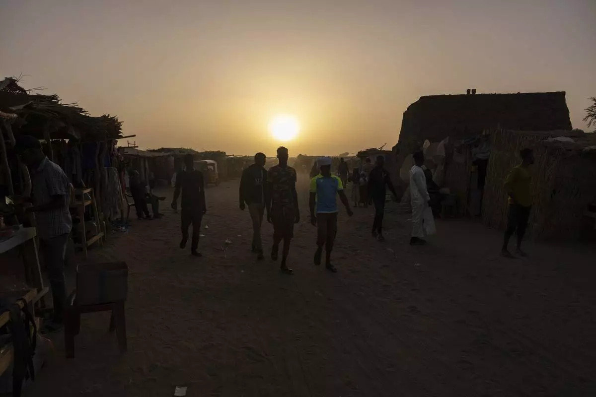 Night falls on the Adre, Chad, transit camp, Tuesday, May 6, 2025. (AP Photo/Caitlin Kelly)