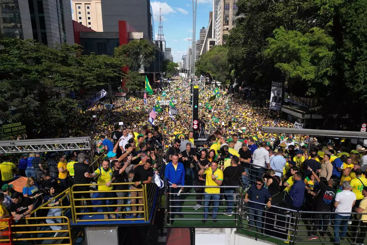 SAO PAULO (AP) — Former Brazilian President Jair Bolsonaro on Sunday attended a public demonstration in Sao Paulo to protest against his ongoing Supreme Court trial in the South American country.