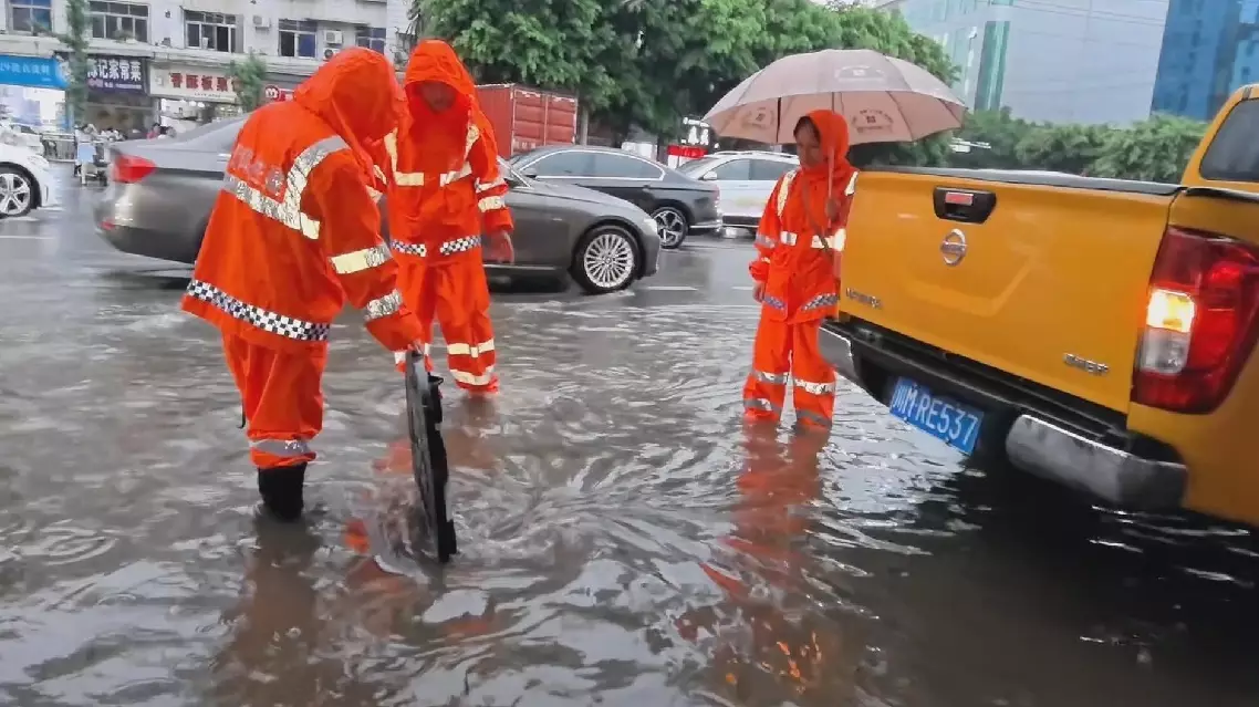 In Chengdu, the provincial capital, torrential rain triggered severe flooding on the road connecting the Caojin Overpass to the North Third Ring Road. In some sections, water levels exceeded 40 centimeters, rendering the road impassable to vehicles.