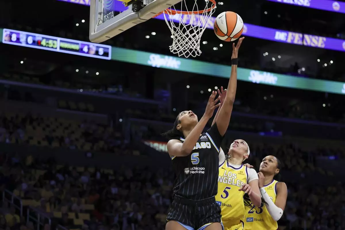 LOS ANGELES (AP) — Angel Reese scored a season-high 24 points and became the first WNBA player with 15 or more rebounds in four straight games, finishing with 16 boards and leading the Chicago Sky to a 92-85 victory on Sunday over the Los Angeles Sparks, who retired Candace Parker's No. 3 jersey at halftime.