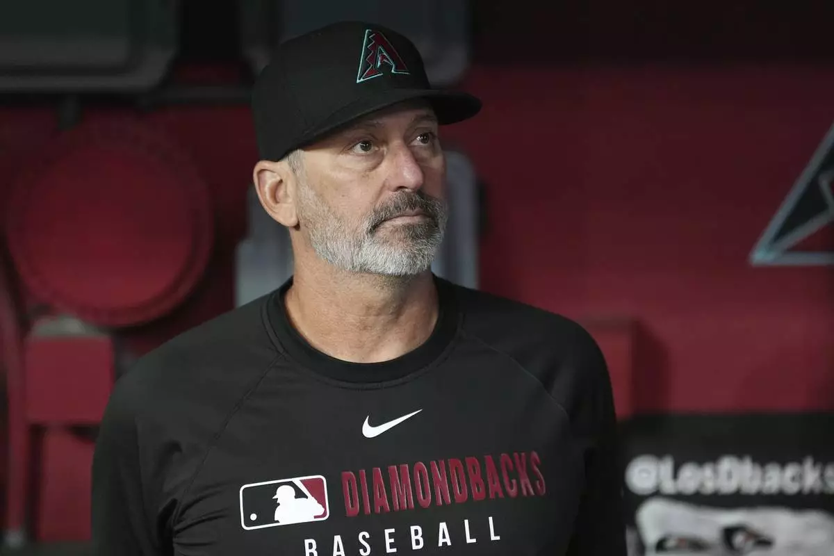 Arizona Diamondbacks manager Torey Lovullo pauses in the dugout prior to a baseball game against the Miami Marlins Sunday, June 29, 2025, in Phoenix. (AP Photo/Ross D. Franklin)