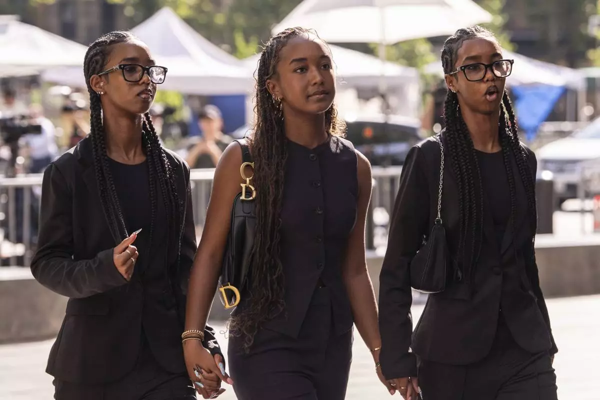 Lila Combs, Chance Combs and Jessie Combs, daughters of Sean Combs, arrive at court on Monday, June 30, 2025, in New York. (AP Photo/Yuki Iwamura)