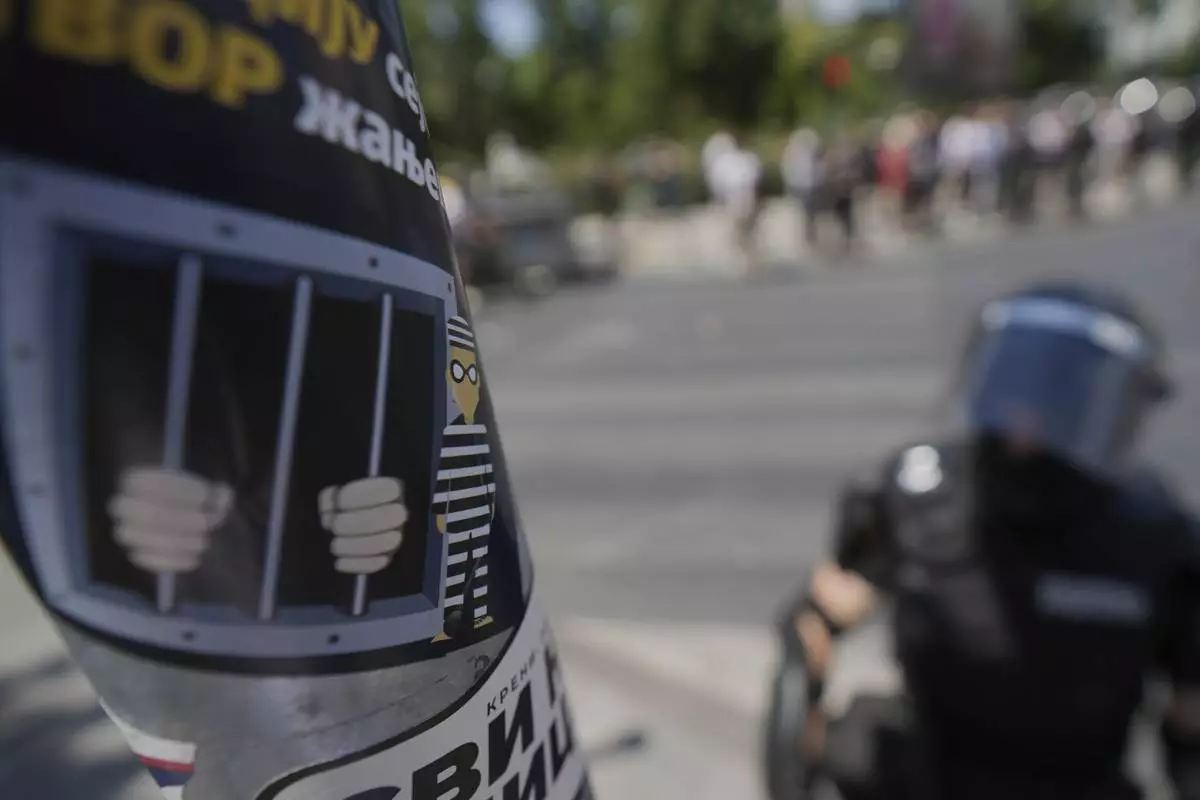Police said in a statement that a number of people were detained but did not specify how many. Video posted on social media showed police vehicles driving at high speed through a blockade in one Belgrade street and people fleeing in panic.