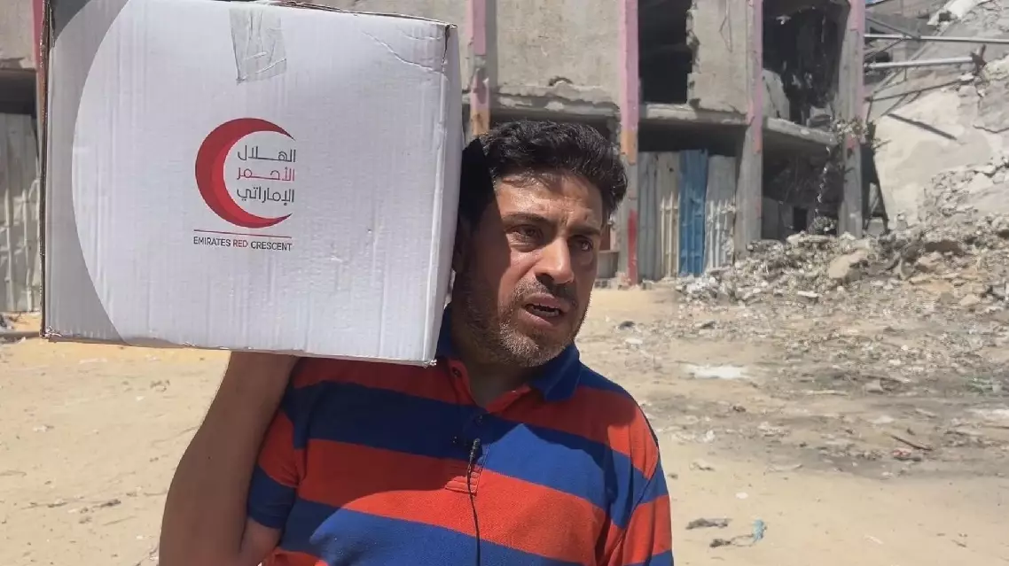 Local resident Ghalia Nuwaij could not hide her emotion as she received aid, explaining that they had not received any assistance for nearly five months. She is a widow raising several orphans, having lost her husband and sons in the ongoing conflict.