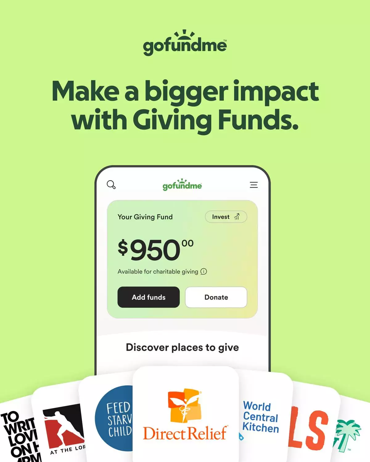 "We built Giving Funds to give everyone a simple way to manage their charitable giving in one place – without the fees or barriers that once kept donor-advised funds out of reach for most people,” said Tim Cadogan, CEO of GoFundMe. “Charitable giving has hovered around 2% of U.S. GDP for decades. We believe that with the right tools, we can help increase that. Giving Funds expand GoFundMe into a full-service destination for generosity – empowering everyone to discover causes, support individuals and nonprofits, and find new ways to connect and give, all through a platform they know and trust.”