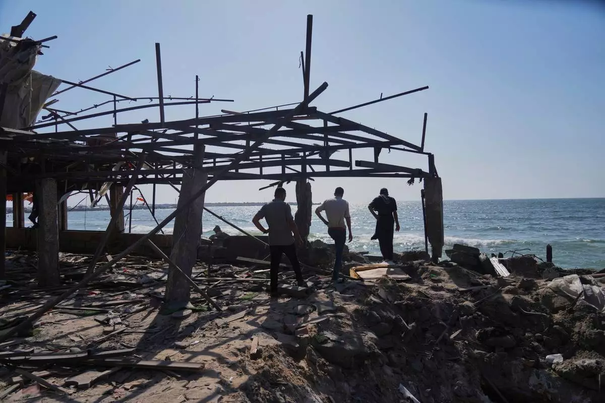Palestinians walk in what was a cafe after it was damaged by an Israeli strike in Gaza City, Monday, June 30, 2025. (AP Photo/Jehad Alshrafi)