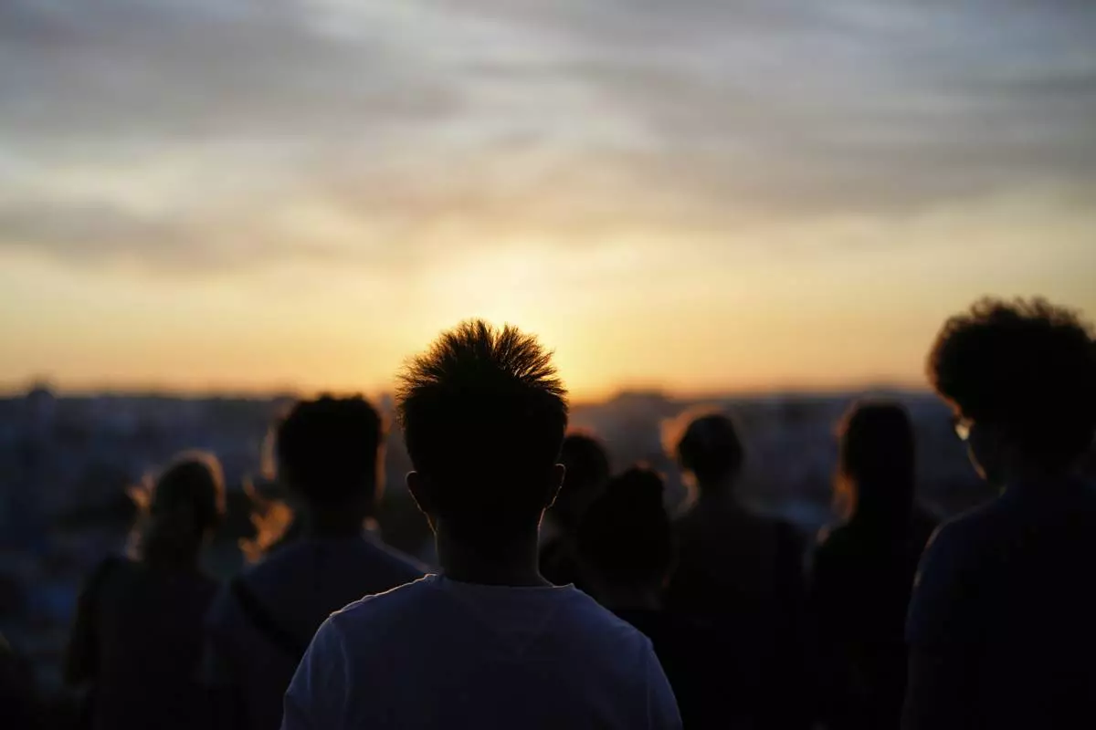 People watch the sun set from the Our Lady of the Hill viewpoint overlooking Lisbon at the end of a hot day in Lisbon, Friday, June 27, 2025. (AP Photo/Armando Franca)