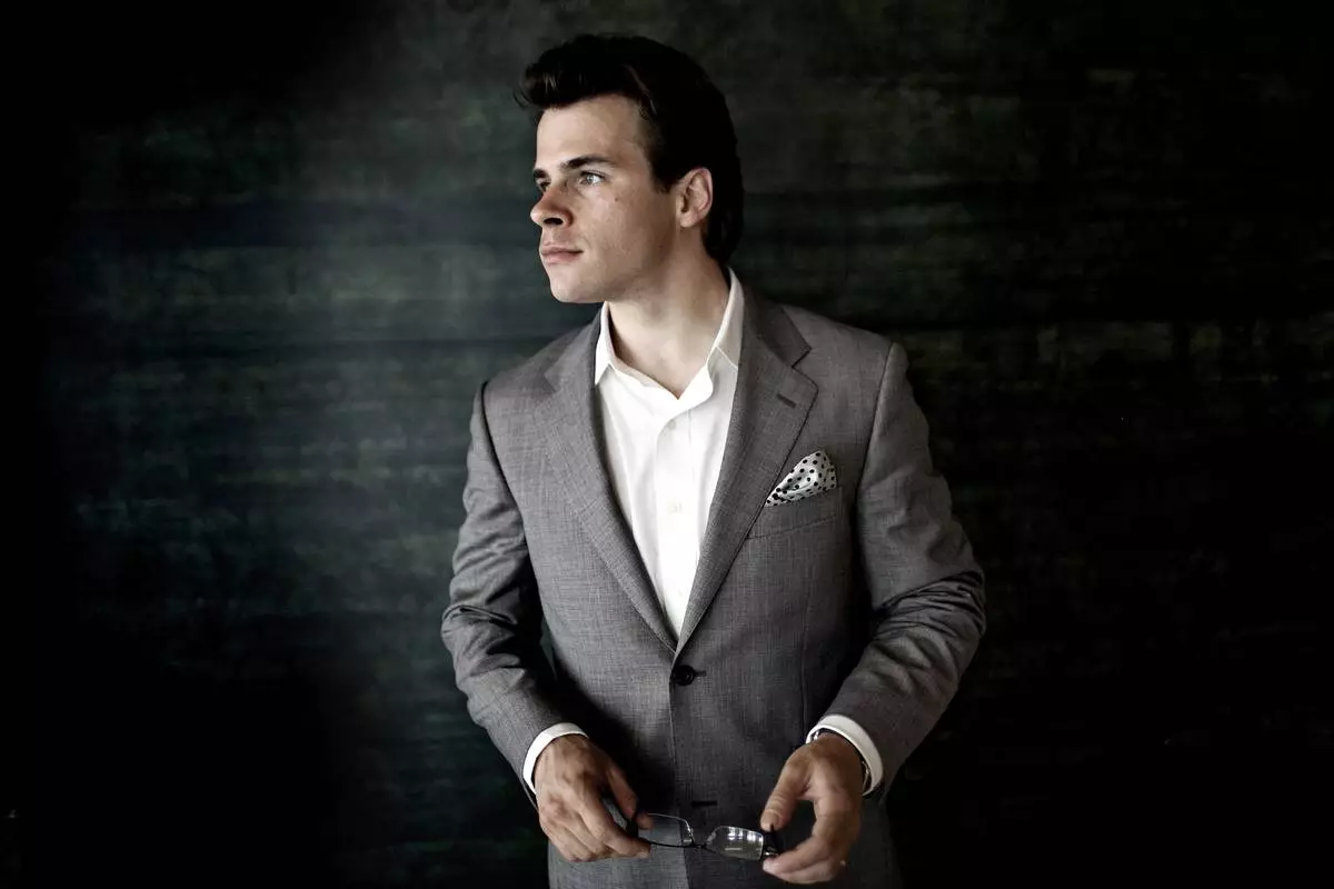 FILE - The music director at the Royal Theatre, Czech conductor Jakub Hrusa, poses for photographs as he was presented at a news conference in the foyer of the Opera in Copenhagen, Denmark, Sept. 30, 2011. (Joachim Adrian/Polfoto via AP, file)