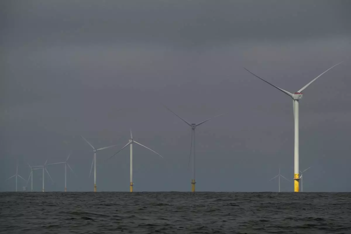 OFF THE COAST OF RHODE ISLAND (AP) — Offshore wind turbines roughly three times the height of the Statue of Liberty were spinning off the coast of Rhode Island on Thursday, sending clean electricity to the region.