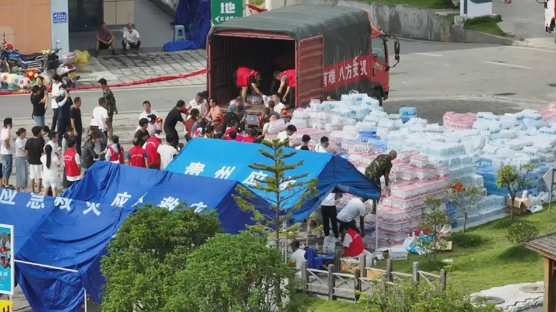 "We mainly carry water here and also distribute water to people who came to collect daily necessities. I myself am also from Qiandongnan. We are all from sister counties and cities. When one is in trouble, people from other places will come to help," said Chen Dan, a volunteer from Danzhai County.