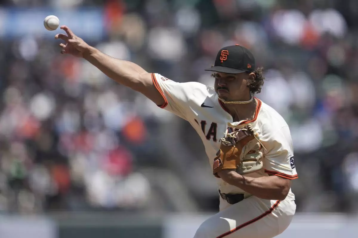 FILE - San Francisco Giants pitcher Jordan Hicks throws against the Colorado Rockies during the first inning of a baseball game in San Francisco, May 3, 2025. (AP Photo/Jeff Chiu, File)