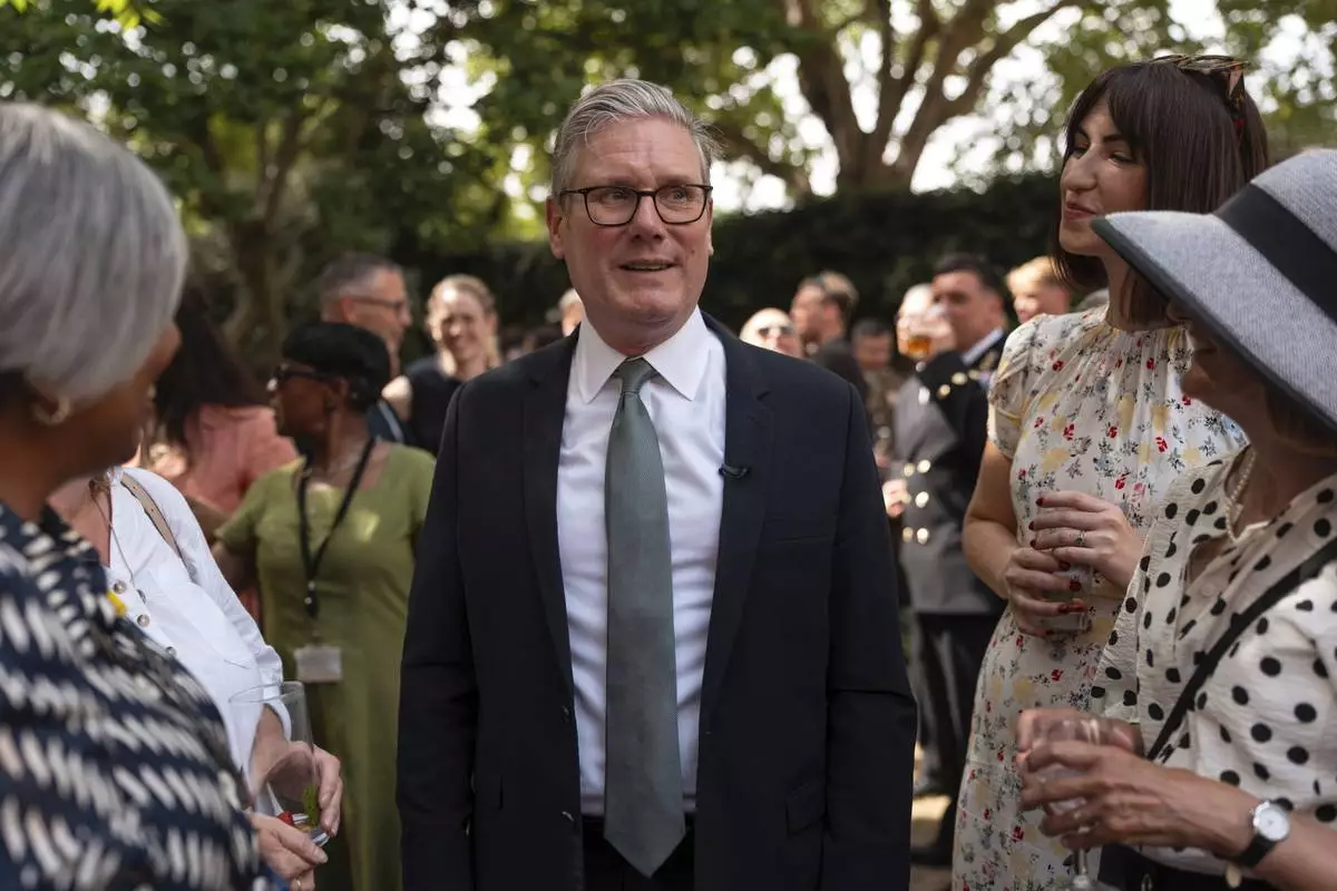 Britain's Prime Minister Keir Starmer hosts a reception for public sector workers at 10 Downing Street, London, Tuesday July 1, 2025. (Carl Court/Pool via AP)