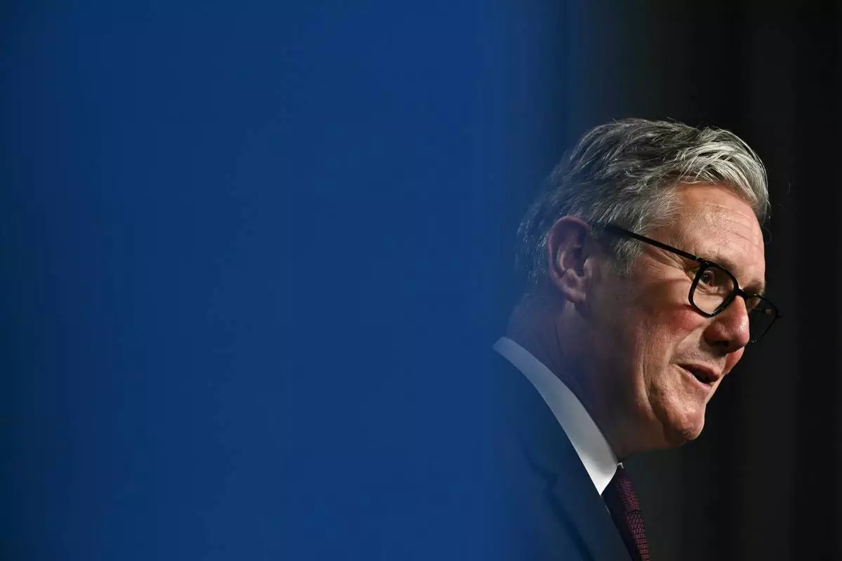 Britain's Prime Minister Keir Starmer addresses a press conference during the NATO summit in The Hague, Netherlands, Wednesday, June 25, 2025. (Ben Stansall/Pool Photo via AP)