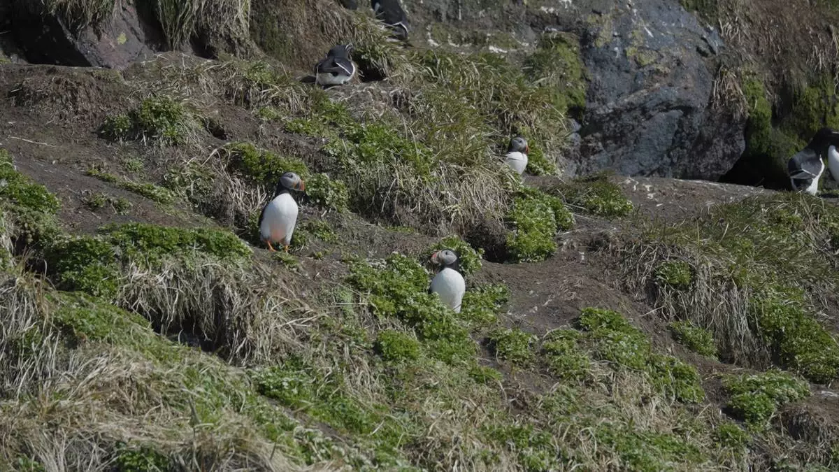 Puffins are seen during a puffin watching tour at sea near Nuuk, Greenland, Wednesday, June 18, 2025. (AP Photo/Kwiyeon Ha)