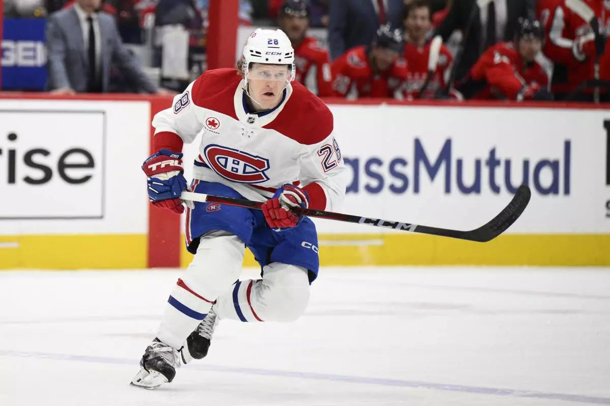 FILE - Montreal Canadiens center Christian Dvorak (28) in action in the first period of Game 2 of a first-round NHL hockey playoff series against the Washington Capitals Wednesday, April 23, 2025, in Washington. (AP Photo/Nick Wass, File)