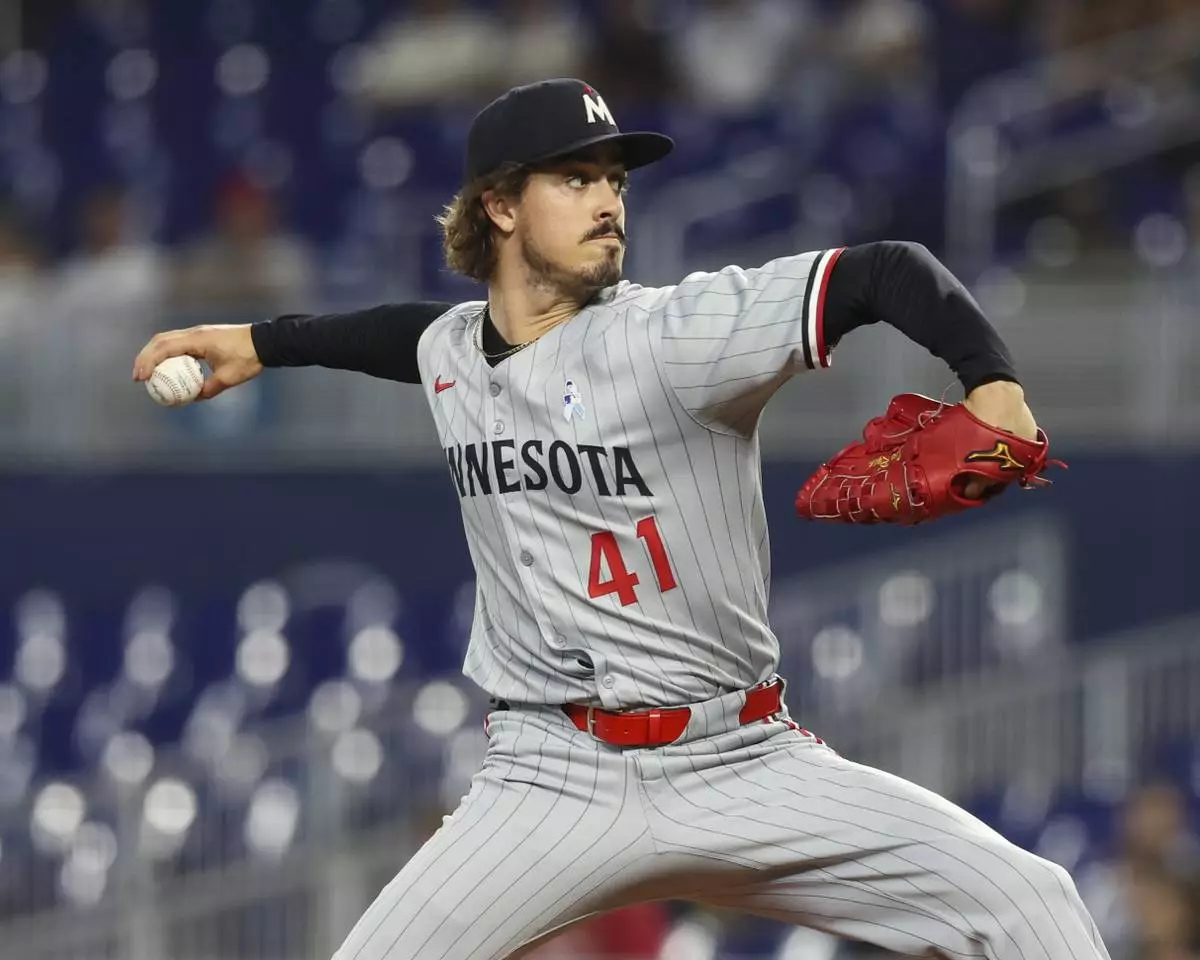 Minnesota Twins starting pitcher Joe Ryan throws during the first inning of a game against the Miami Marlins, Tuesday, July 1, 2025, in Miami. (AP Photo/Alexandra Rodriguez)