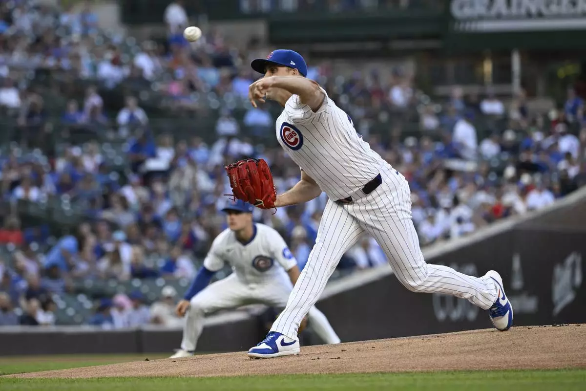 Chicago Cubs pitcher Matthew Boyd delivers during the first inning of a baseball game against the Cleveland Guardians, Tuesday, July 1, 2025, in Chicago. (AP Photo/Matt Marton)