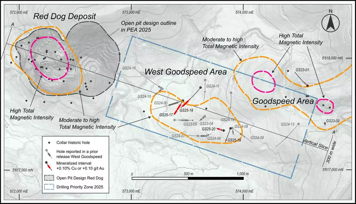 Sam Lee, President and CEO stated “Drilling at West Goodspeed continues to reinforce the potential for near-surface deposits in the Northwest Corridor. We are encouraged by the continuity of mineralization, including in the higher-grade zones at depth. The intercepts observed in multiple holes underscore the strength of the system outlined at West Goodspeed during the 2023 and 2024 campaigns and the growing understanding of the mineralized system in this area.”