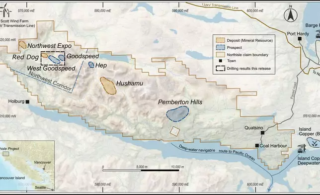 As of June 26, 2025, Northisle has completed a total of 5,126 metres of drilling at the North Island Project. This includes twelve drill holes totaling 3,554 metres at West Goodspeed, three holes totaling 1,315 metres at the Cougar target in the Northwest Expo area, one 342-metre hole at the Goodspeed prospect, and one 257-metre hole at Red Dog testing the potential northwest extension of West Goodspeed towards the northwest.
