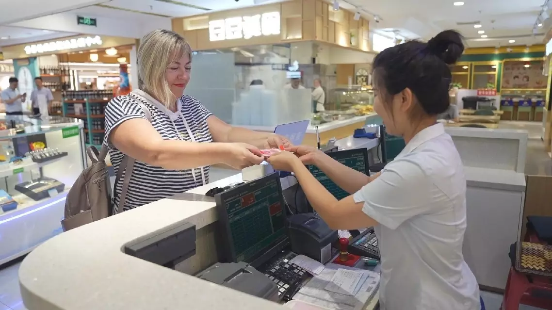 According to Russian tourists who selected Chinese tea at a tax refund store, the new instant tax refund policy has significantly enhanced their shopping experience, with streamlining the tax refund process and reducing wait times.