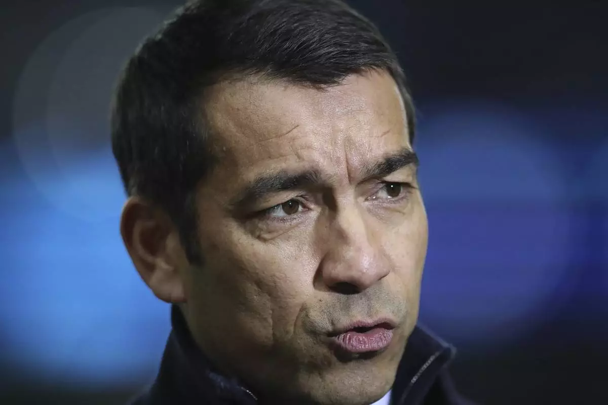 FILE - Rangers' Giovanni van Bronckhorst speaks to the media ahead of the start of the Champions League group A soccer match between, Glasgow Rangers and Ajax, at Ibrox stadium in Glasgow, Scotland, Tuesday, Nov. 1, 2022. (AP Photo/Scott Heppell, File)