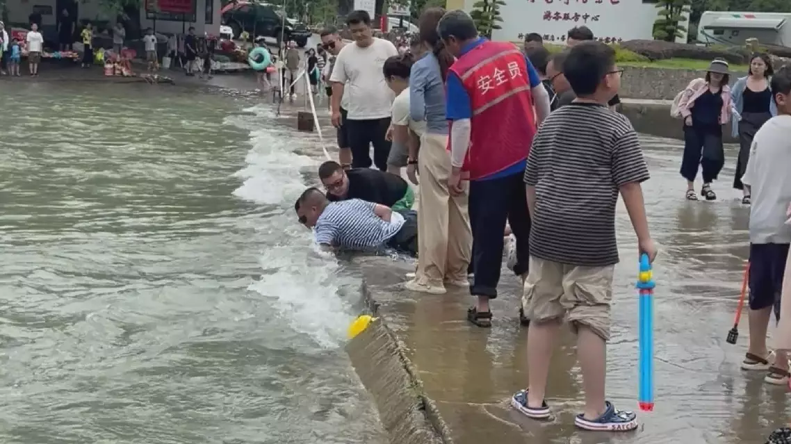 "There were other tourists lying on the ground, holding onto them. We were all terrified - the boy had completely disappeared from view. We can't enter the water from that location. The rescuers used all their strength, even suffering cuts on their hands and feet," said Ding Wanqing, a witness.