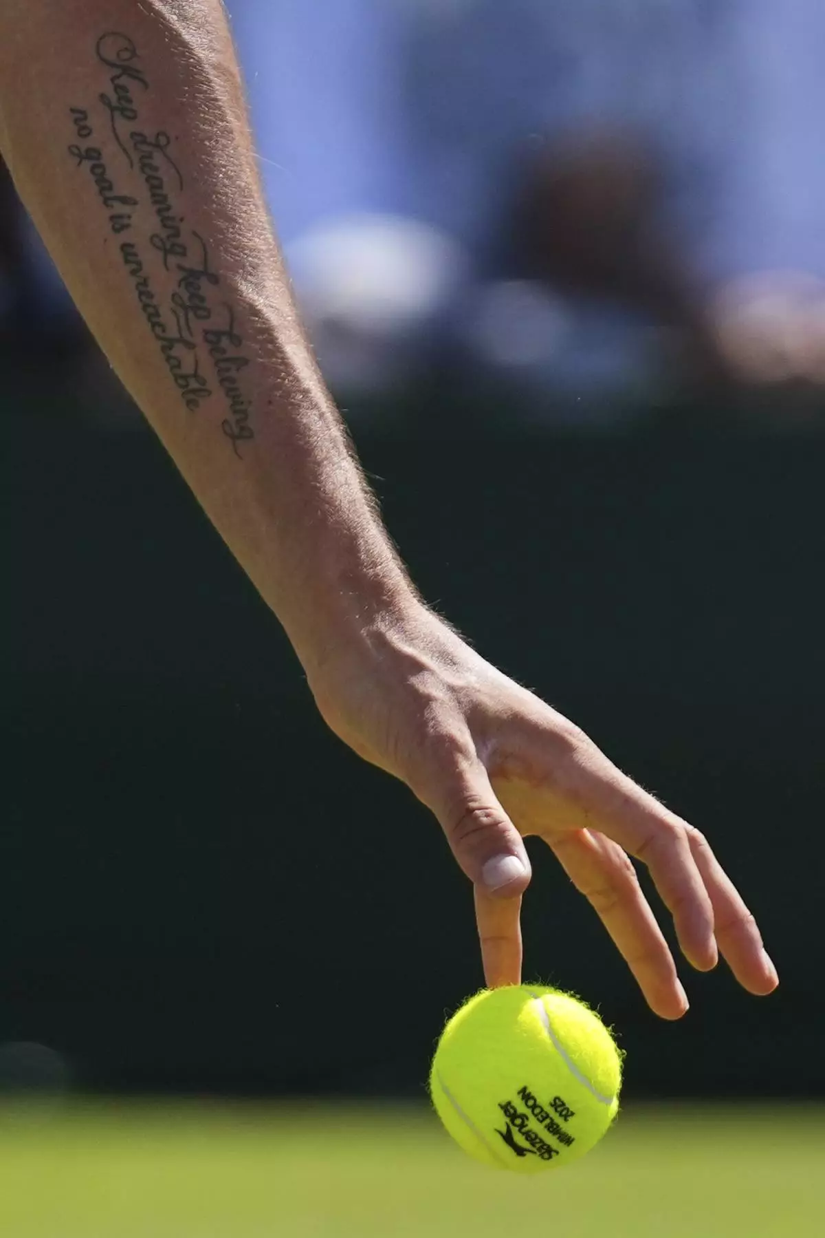 Jannik Sinner of Italy returns to Aleksandar Vukic of Australia during their second round men's singles match at the Wimbledon Tennis Championships in London, Thursday, July 3, 2025. (AP Photo/Alastair Grant)