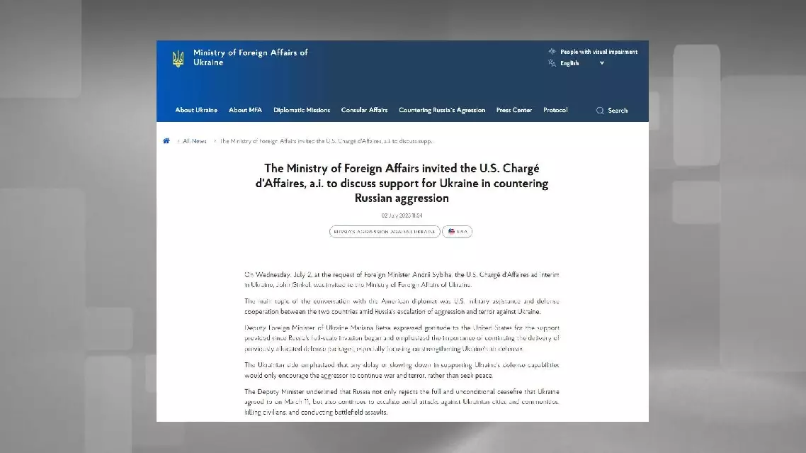 Following the announcement, the interim U.S. Charge d'Affaires in Ukraine, John Ginkel, was invited to the Ministry of Foreign Affairs in Kyiv on Wednesday.