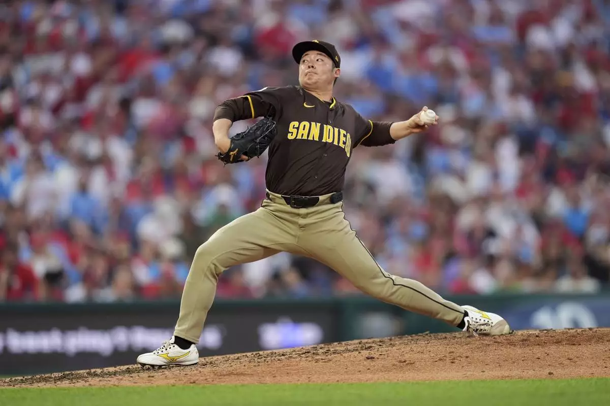 San Diego Padres' Yuki Matsui pitches during the seventh inning in the second baseball game of a doubleheader against the Philadelphia Phillies Wednesday, July 2, 2025, in Philadelphia. (AP Photo/Matt Slocum)