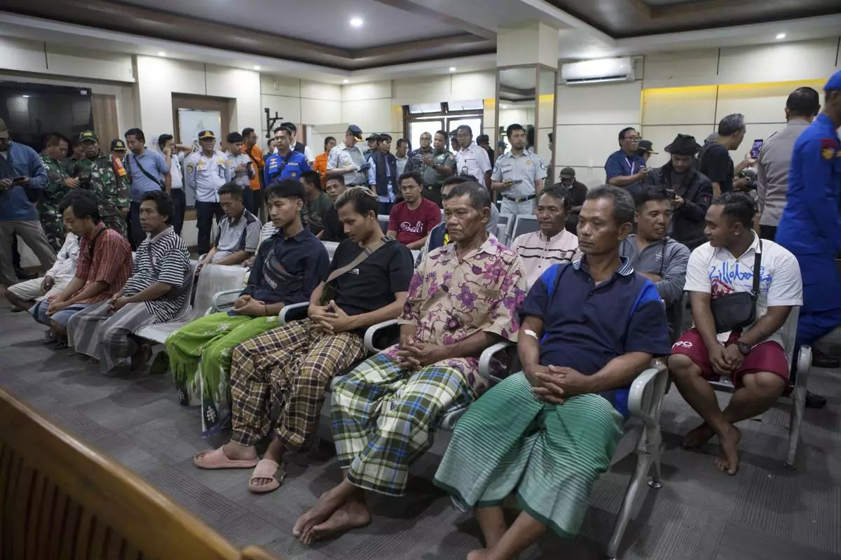 Survivors rescued after a ferry sank wait for a health examination in Gilimanuk on Bali island, Indonesia, Thursday, July 3, 2025. (AP Photo/Firdia Lisnawati)