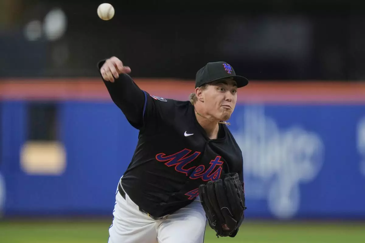 New York Mets' Blade Tidwell pitches dsecond inning in the second baseball game against the Milwaukee Brewers of a doubleheader Wednesday, July 2, 2025, in New York. (AP Photo/Frank Franklin II)