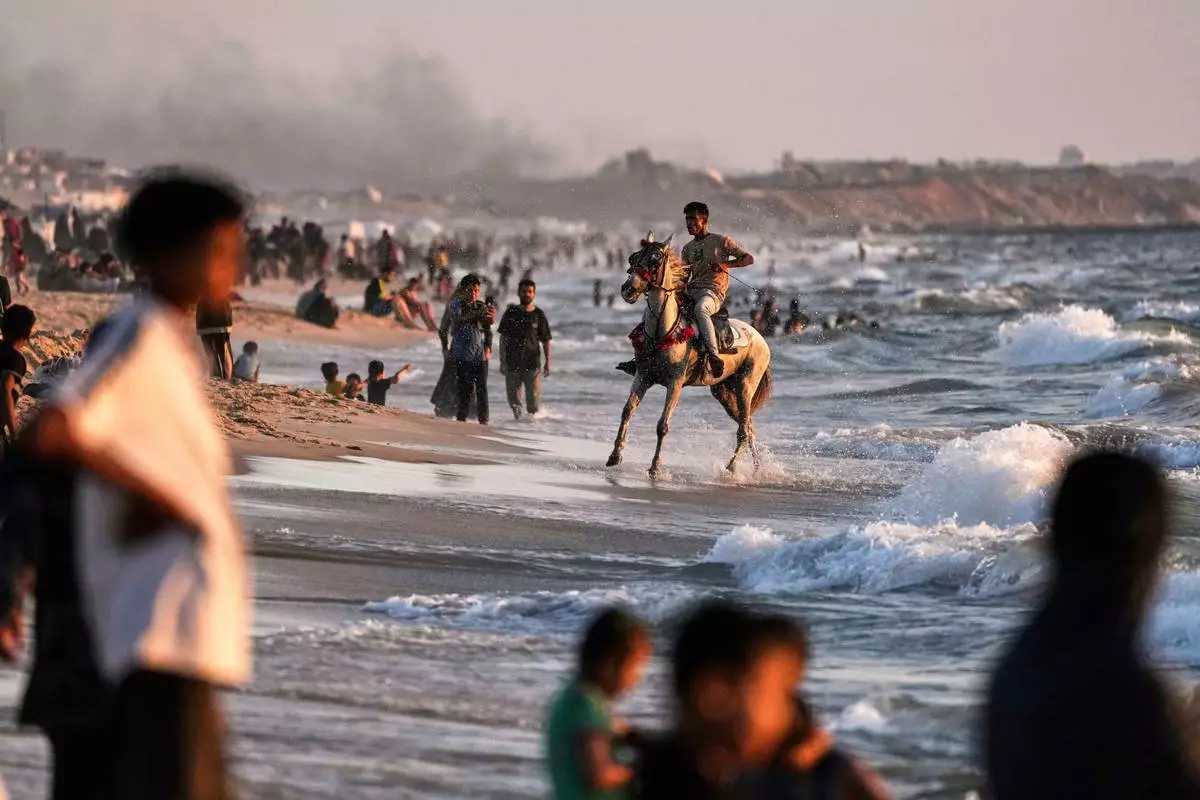 A Palestinian rides a horse at the seafront at sunset in Gaza City, Wednesday, July 2, 2025. (AP Photo/Jehad Alshrafi)