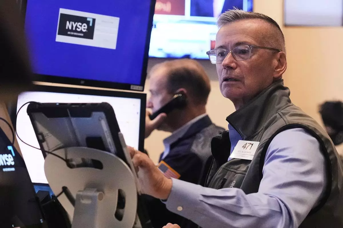 Trader Neil Catania works on the floor of the New York Stock Exchange, Tuesday, July 1, 2025. (AP Photo/Richard Drew)