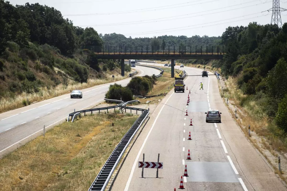 The site of the car accident in which Liverpool player Diogo Jota and his brother died in the north-western city of Zamora, Spain, Thursday, July 3, 2025. (AP Photo/Emilio Fraile)