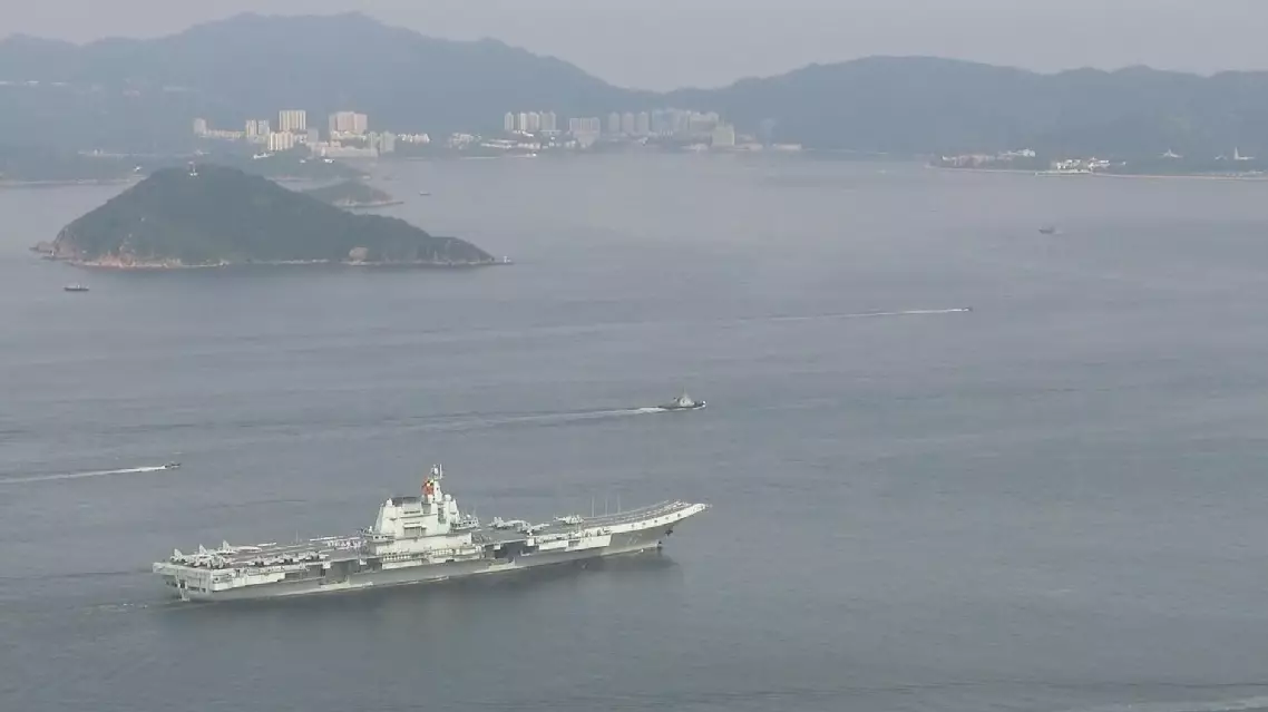 At around 08:00, the fleet entered the Victoria Harbor, comprising the aircraft carrier Shandong, the flagship, and three other vessels, namely the missile destroyers Yan'an and Zhanjiang, and the missile frigate Yuncheng.