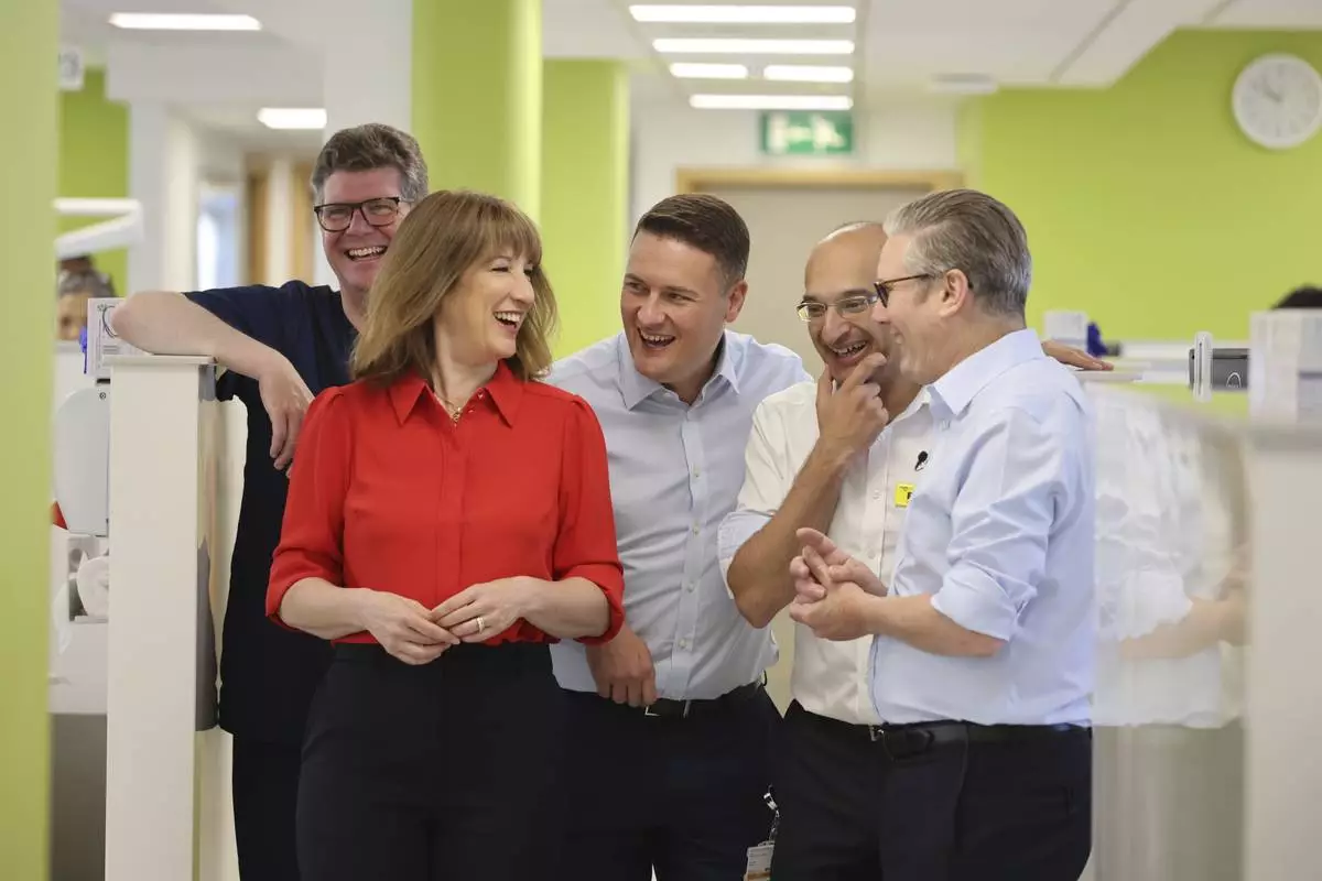 Britain's Prime Minister Keir Starmer, right, Chancellor Rachel Reeves and Health Secretary Wes Streeting during a visit to the Sir Ludwig Guttman Health & Wellbeing Centre in east London, Thursday, July 3, 2025. (Jack Hill/Pool Photo via AP