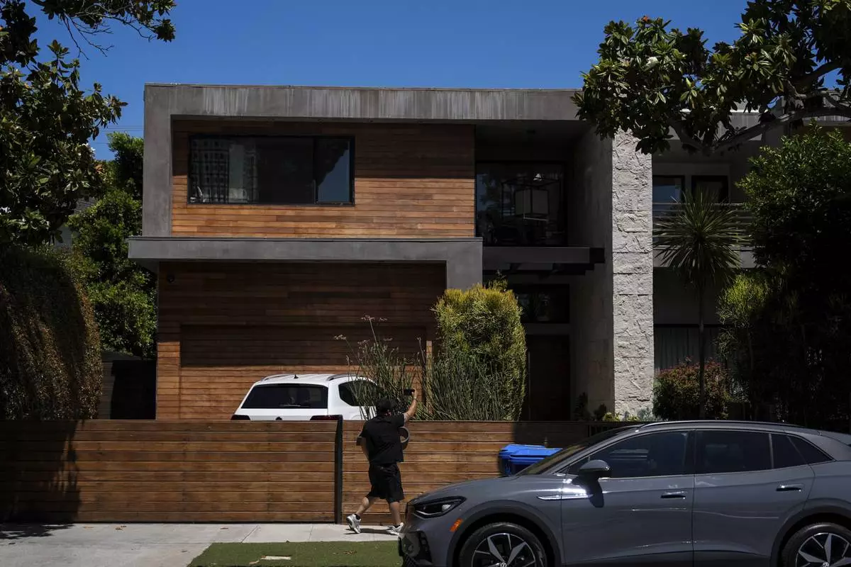 A person records the residency of Mexican boxer Julio César Chávez Jr., Thursday, July 3, 2025, in Los Angeles. (AP Photo/Jae C. Hong)