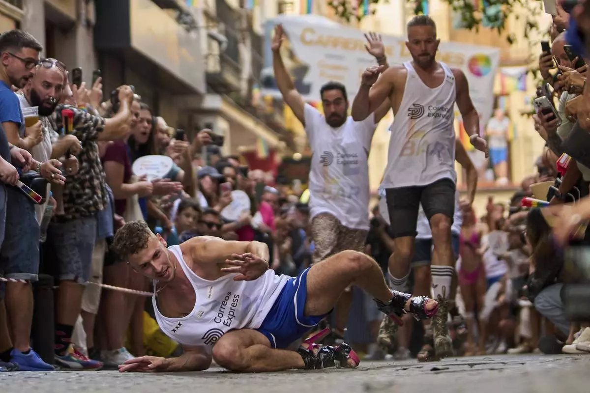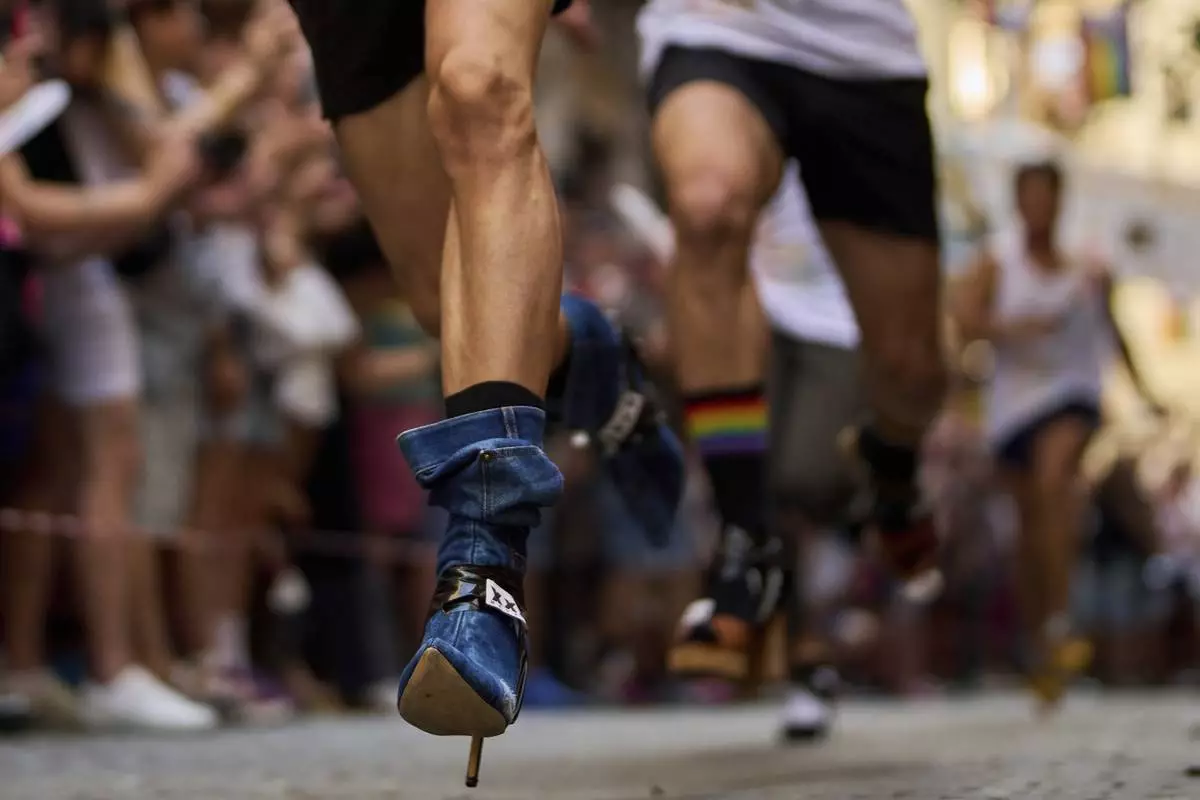 MADRID (AP) — Runners sporting heels of at least 15 centimeters (5.9 inches) competed in Madrid's high heel race during Pride Week. Despite the heat, supporters came out to cheer them, some dressed in drag and fanning themselves to keep cool.