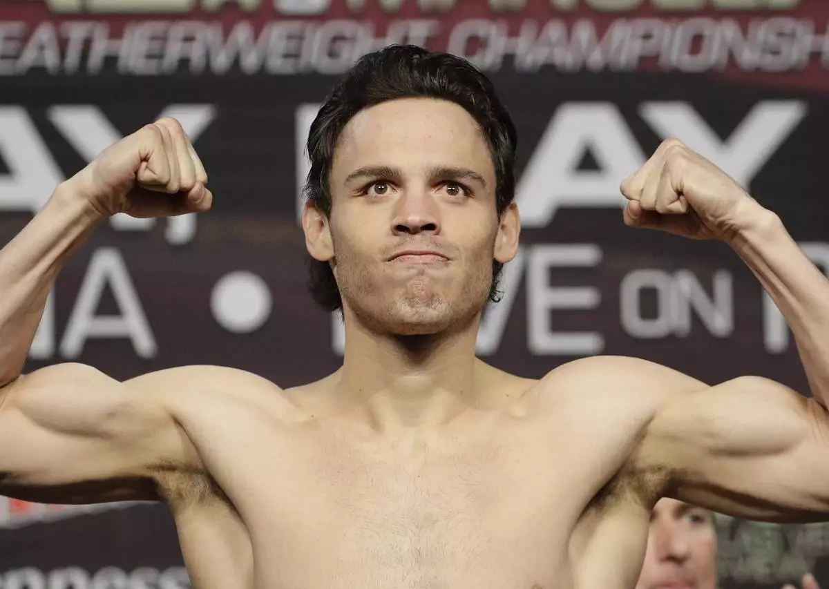 FILE - Julio Cesar Chavez Jr. poses for photographers during a weigh-in, in Las Vegas, May 5, 2017. (AP Photo/John Locher, File)