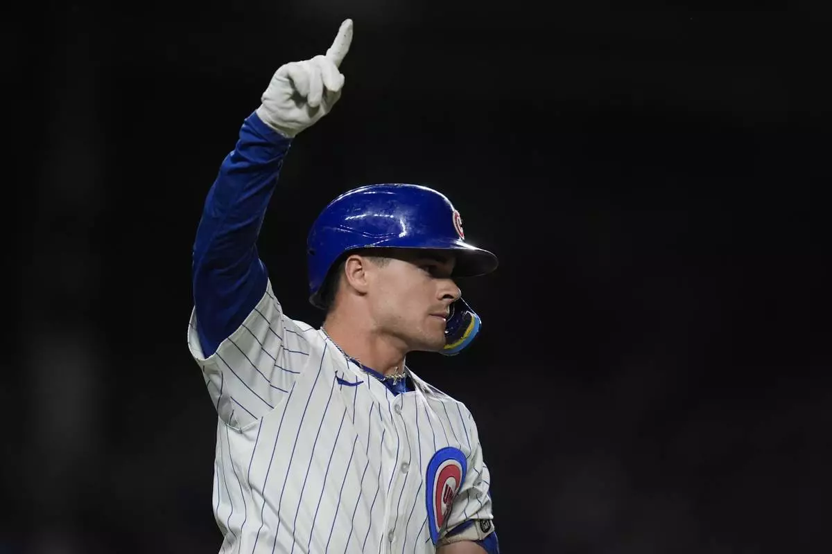 Chicago Cubs' Matt Shaw celebrates after hitting walkoff home run in the 10th inning of a baseball game to defeat the Cleveland Guardians, Thursday, July 3, 2025, in Chicago. (AP Photo/Erin Hooley)