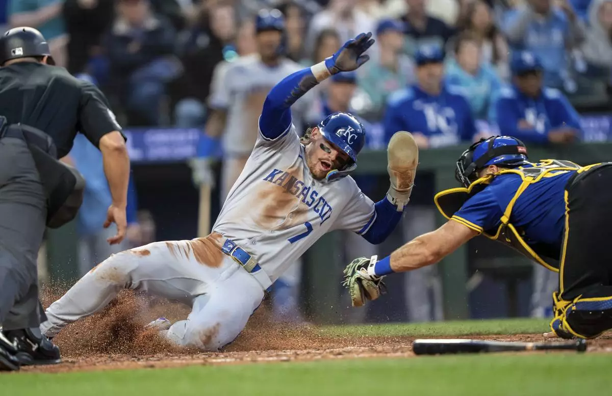Bobby Witt Jr. tied the score 1-1 with a single to center field with one out and then stole second base to put two runners in scoring position. Pasquantino grounded a single to right field drive in both runners, with Witt scoring after making an elusive move to avoid the tag from catcher Cal Raleigh to give the Royals a two-run lead.