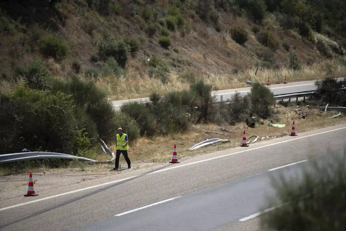 The site of the car accident in which Liverpool player Diogo Jota and his brother died in the north-western city of Zamora, Spain, Thursday, July 3, 2025. (AP Photo/Emilio Fraile)