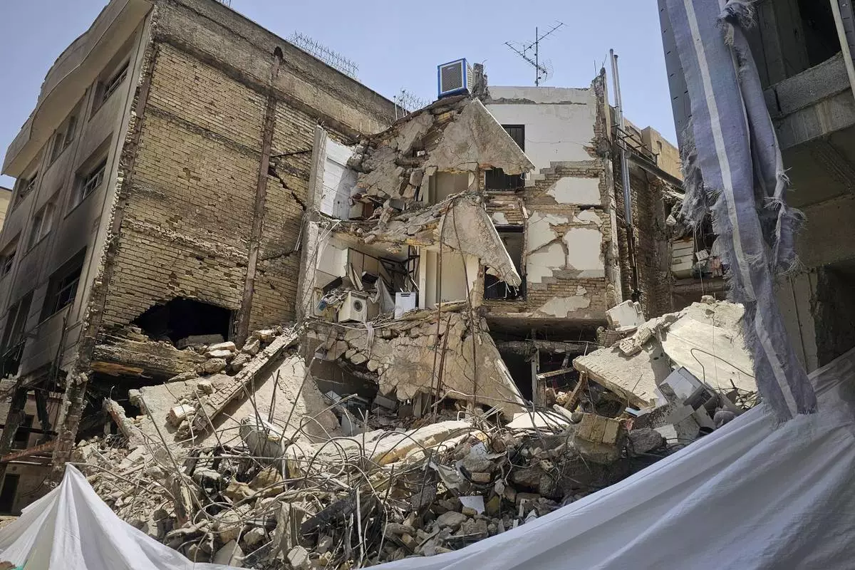 Debris from a strike on a residential building in Tehran, Iran, Friday, June 27, 2025. Many nearby homes were destroyed or severely damaged, leaving them uninhabitable. (AP Photo)